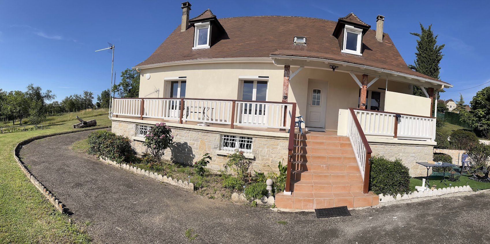 La maison principale, entièrement rénovée avec des prestations de qualité, bénéficie d’une isolation extérieure performante et d’un système de chauffage entièrement repensé, garantissant confort et efficacité énergétique. Sa très belle exposition lui confère une luminosité remarquable tout au long de la journée, rendant les espaces particulièrement agréables à vivre.