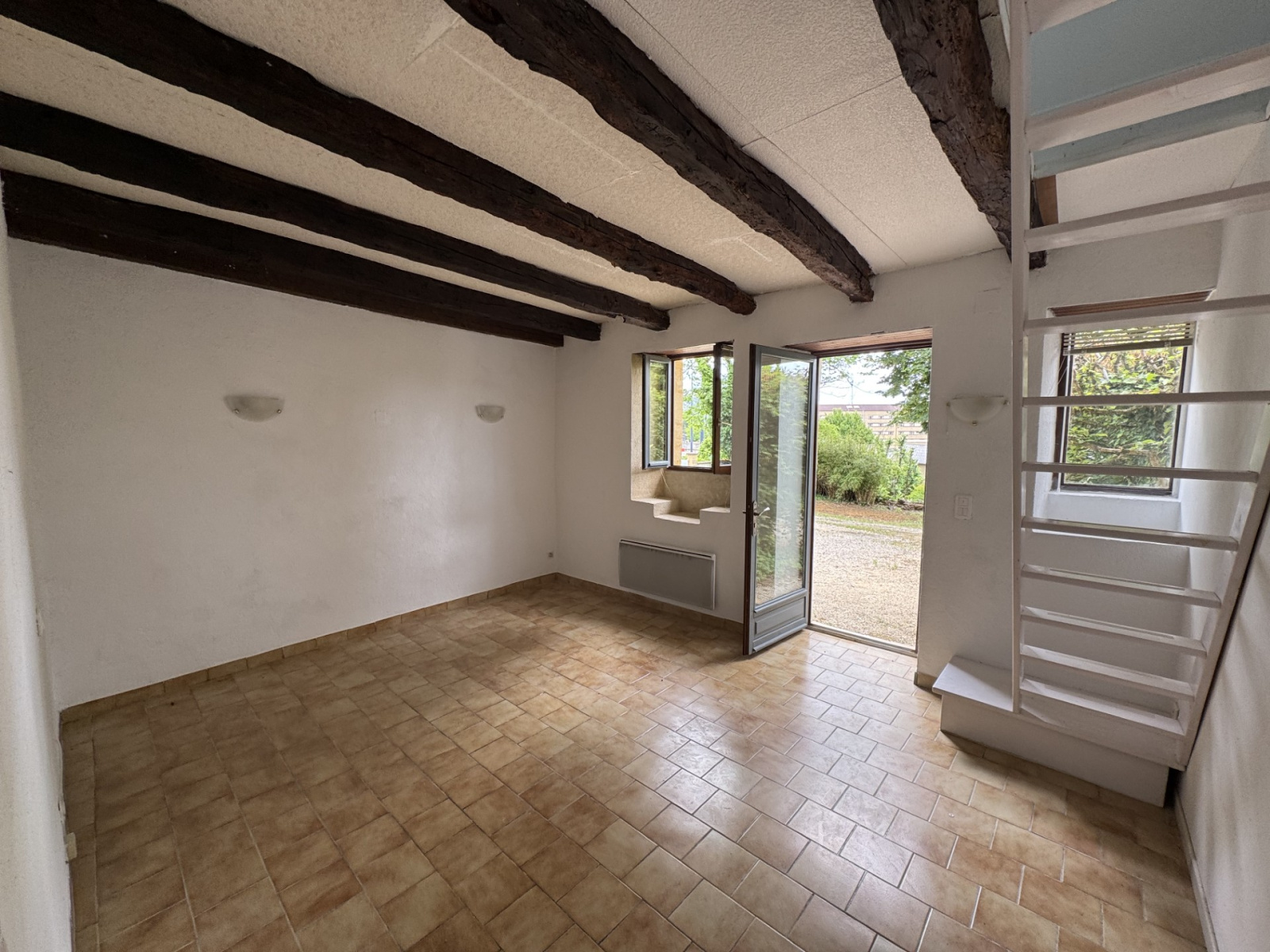 Entrée / pièce de vie, une petite cuisine séparée, une salle d'eau avec wc. A l'étage 2 petites chambres en enfilade.