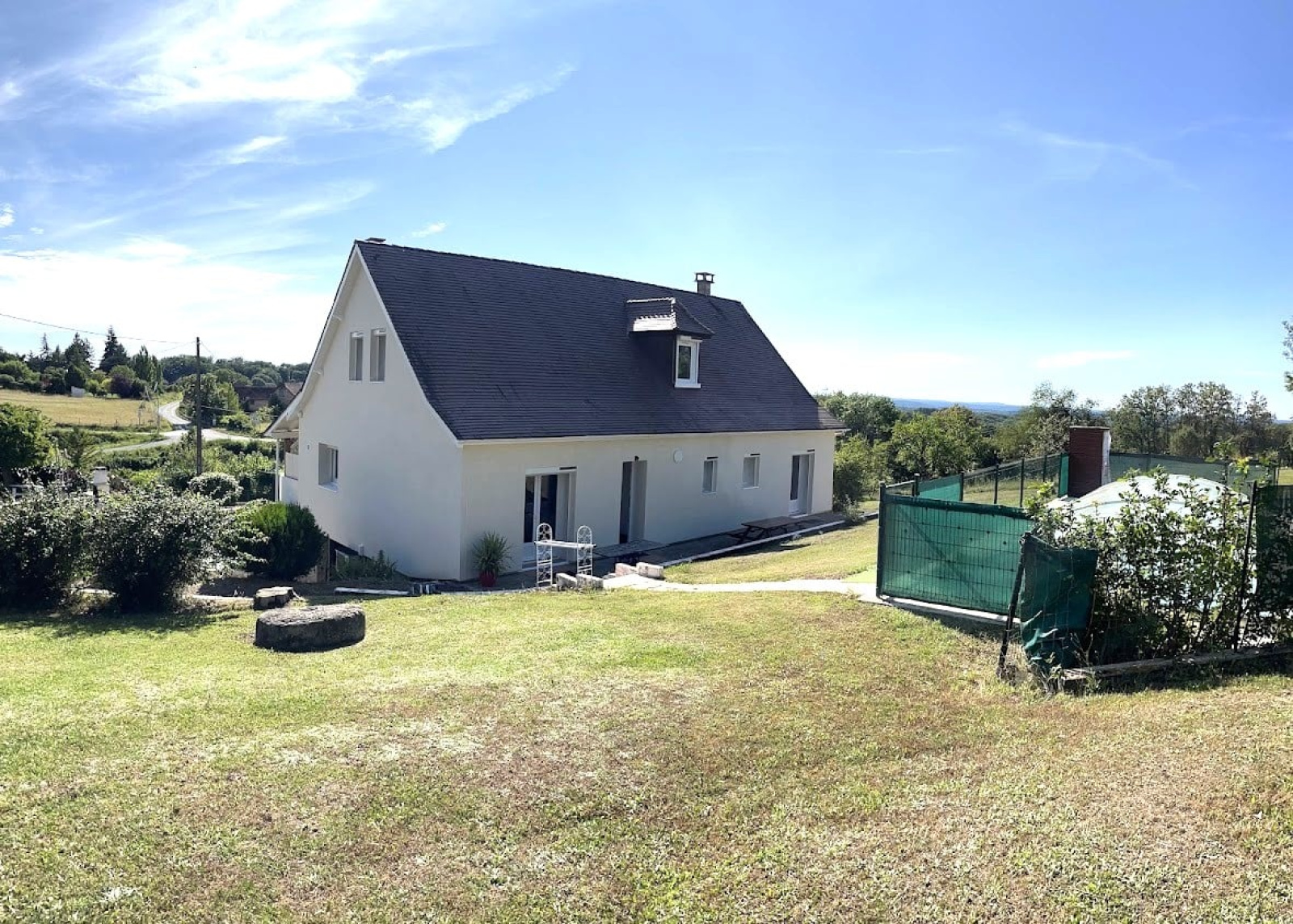 La maison principale, entièrement rénovée avec des prestations de qualité, bénéficie d’une isolation extérieure performante et d’un système de chauffage entièrement repensé, garantissant confort et efficacité énergétique. Sa très belle exposition lui confère une luminosité remarquable tout au long de la journée, rendant les espaces particulièrement agréables à vivre.